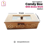 Add a touch of timeless elegance to your living space with our Elegant Brass-Embellished Wooden Candy Box. Handcrafted with exquisite brass inlay work, this rectangular candy box is perfect for storing candies, dry fruits, or small treats in style. The smooth wooden finish paired with intricate brass detailing creates a stunning visual appeal, making it not just a storage box but a piece of art for your home decor.