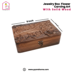 Add timeless elegance to your dressing table with our Handcrafted Solid Wood Jewelry Box, beautifully adorned with intricate floral carving art. Made from premium solid wood, this exquisite box offers a perfect blend of durability and charm to keep your precious jewelry safe and organized.