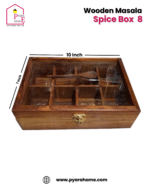 Bring timeless elegance and traditional charm to your kitchen with our Handcrafted Wooden Masala Spice Box. Designed for those who cherish authentic flavors and organized cooking, this beautiful spice box features 8 spacious compartments, perfect for storing your essential spices, herbs, or dry condiments.