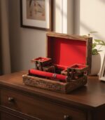 Bring elegance and tradition to your dressing table with the Wooden Jewelry and Bangle Box by Pyara Home. Thoughtfully handcrafted, this box is designed to safely store and organize your bangles, earrings, rings, and necklaces while adding a timeless touch of charm.