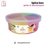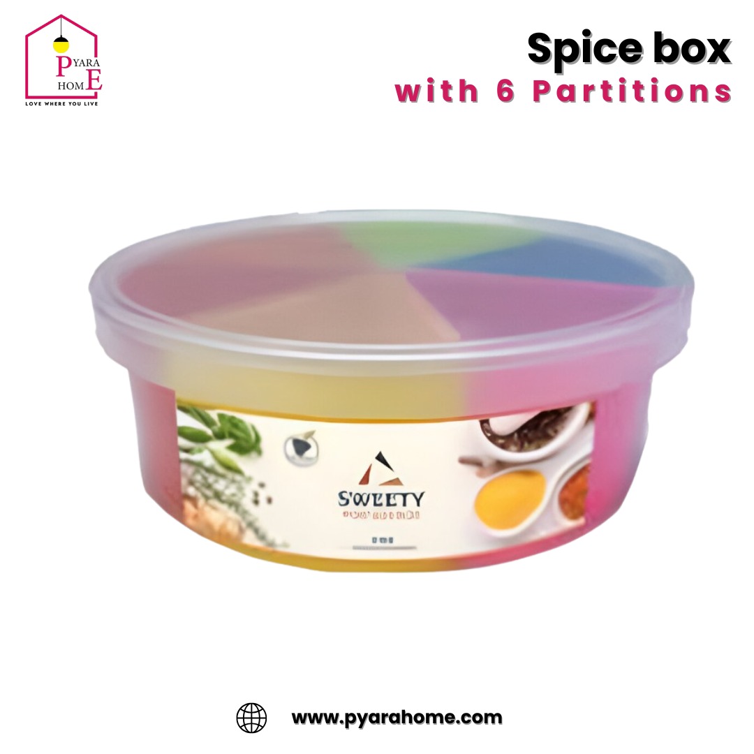 Add a touch of style and convenience to your kitchen with the Spice Box with 6 Partition. Thoughtfully designed with six spacious compartments, this box keeps your essential spices like haldi, mirch, dhaniya, jeera, garam masala, and more neatly organized in one place.