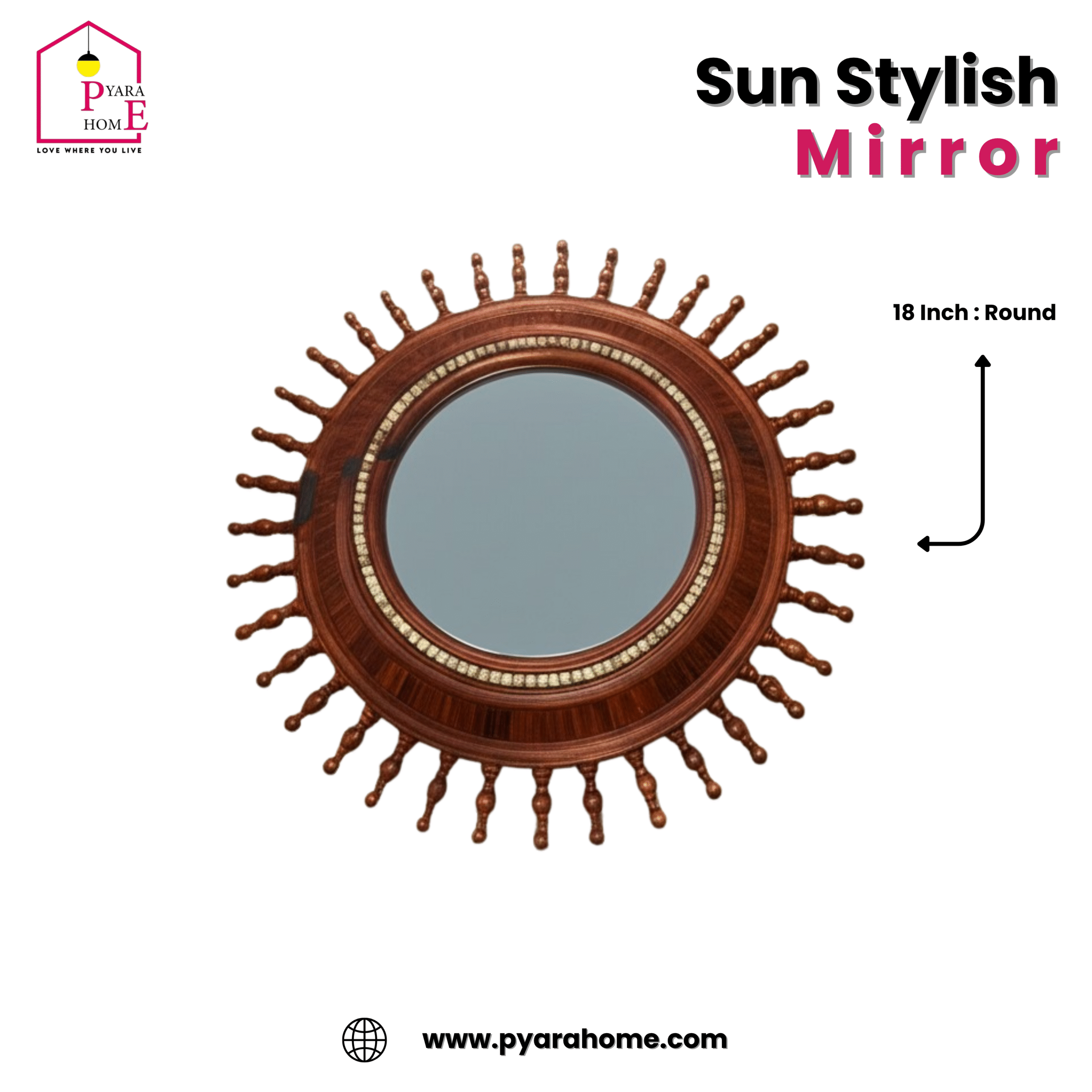 Infuse your home with warmth, light, and artisanal beauty with the Radiance Wooden Sunburst Mirror by Pyara Home. Inspired by the timeless elegance of the sun’s rays, this handcrafted piece combines natural wooden textures with a striking sunburst design—turning any wall into a statement of style.