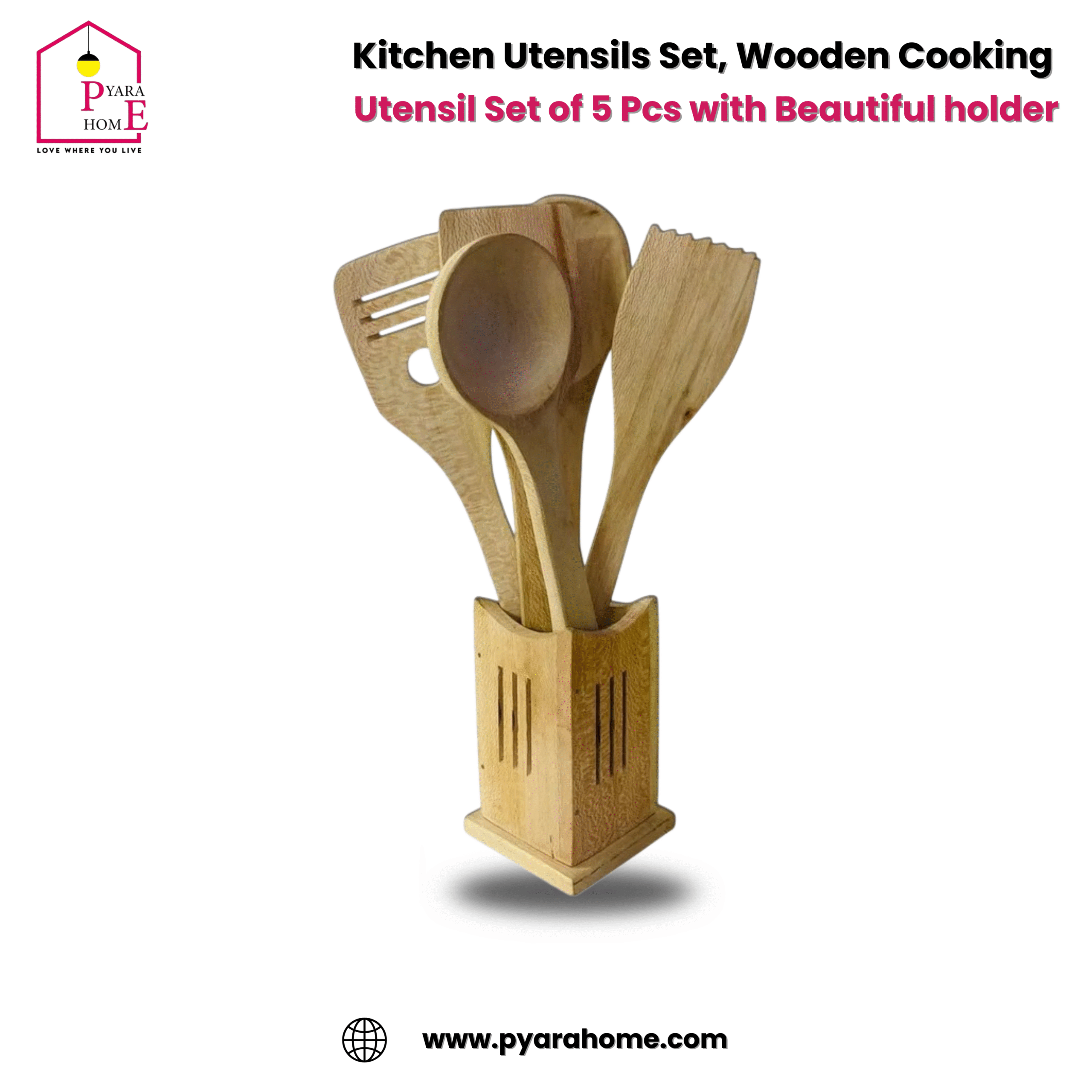 The beautifully designed wooden holder keeps your utensils organized and within easy reach, adding a warm, natural touch to your kitchen décor.